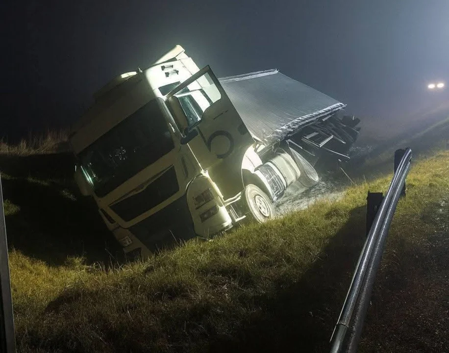 Ciężarówka wypadła z jezdni