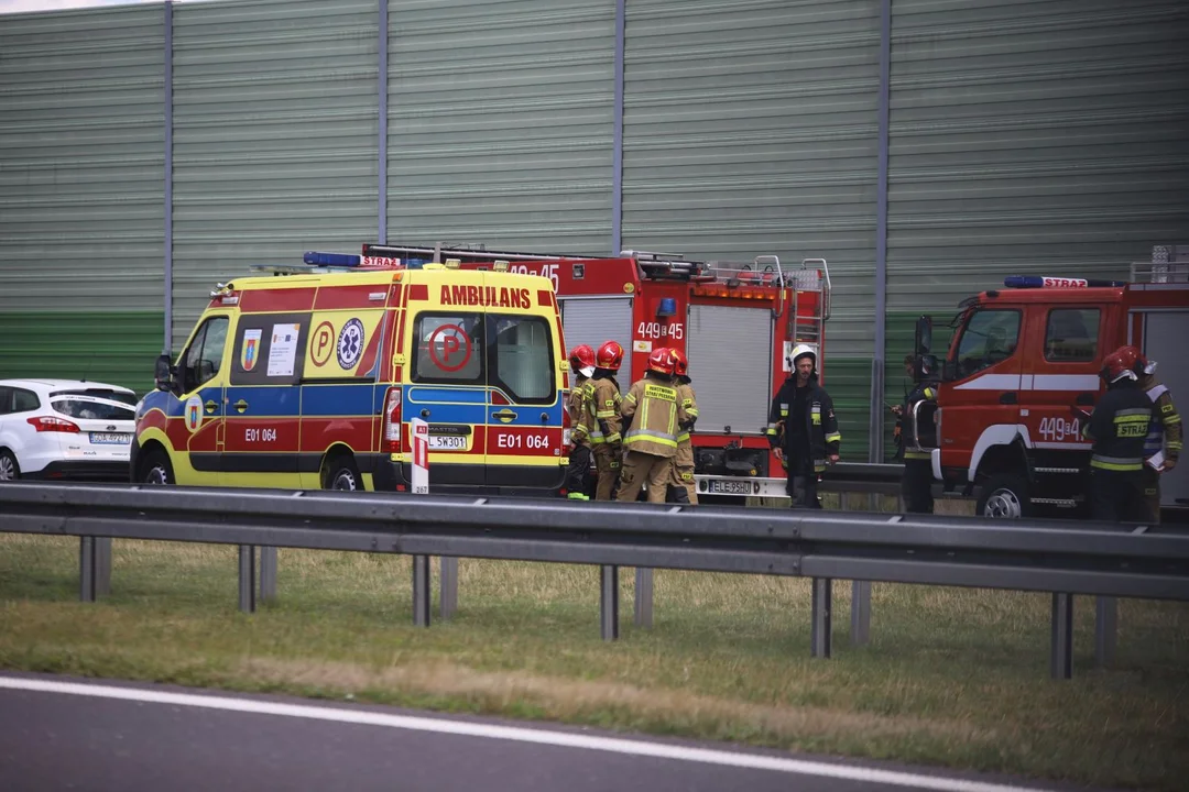 - Pojazd ciężarowy uderzył w unieruchomiony, zabezbezpiezony przez patrol drogowy , pojazd osobowy na pasie awaryjnym. Jezdnia w kierunku Katowic zablokowana na czas działania służb ratunkowych