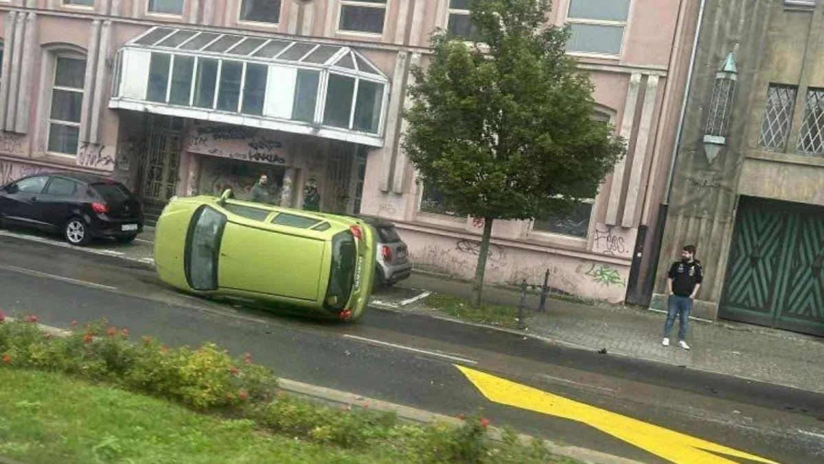 Na al. Kościuszki, na odcinku między ul. 6 Sierpnia a Zieloną, zderzyły się trzy samochody. Jeden z nich wylądował na boku. Na szczęście nikomu nic się nie stało.