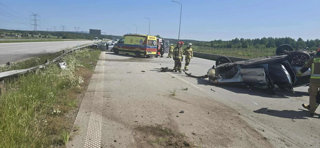 O godz. 9.25, na 390. kilometrze trasy w stronę Gdańska, za zjazdem na Radomsko, zderzyły się ze sobą dwa samochody osobowe. Jeden z nich dachował. Kierowca został ranny. Jezdnia z kierunku Gdańska jest zablokowana. Objazd prowadzi po drogach krajowych 42 i 91c.