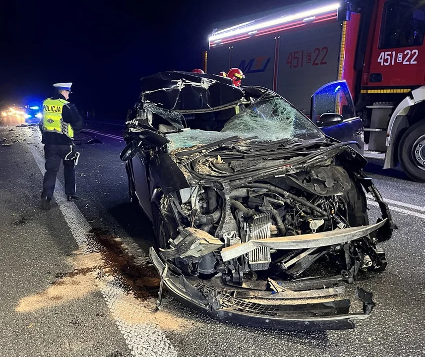 Do kraksy doszło na 392. kilometrze drogi krajowej 92 w miejscowości Niedźwiada. Wjechały w siebie audi A2 i kombajn rolniczy marki New Holland. Ranna w wypadku została jedna osoba.