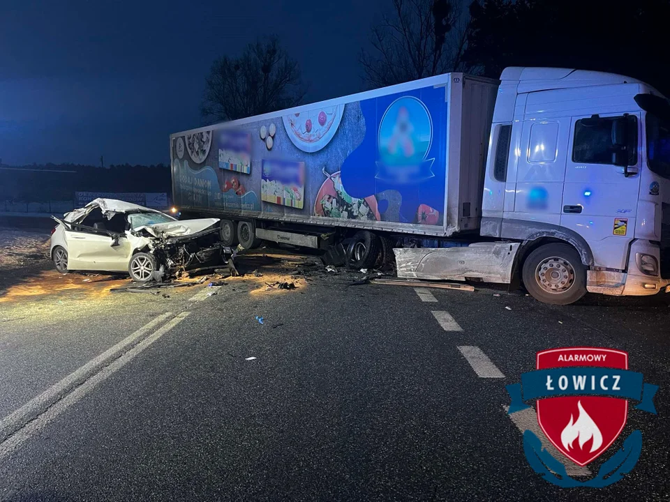 Prowadząca samochód ciężarowy 38-letnia kobieta nie odniosła obrażeń. Na miejscu działały dwa zastępy JRG Łowicz, OSP Rogóźno, dwa zespoły ratownictwa medycznego i policja.Droga krajowa nr 14 jest zablokowana, kierowcy mogą korzystać z objazdu przez DW704 w stronę autostrady A2 oraz drogami lokalnymi.