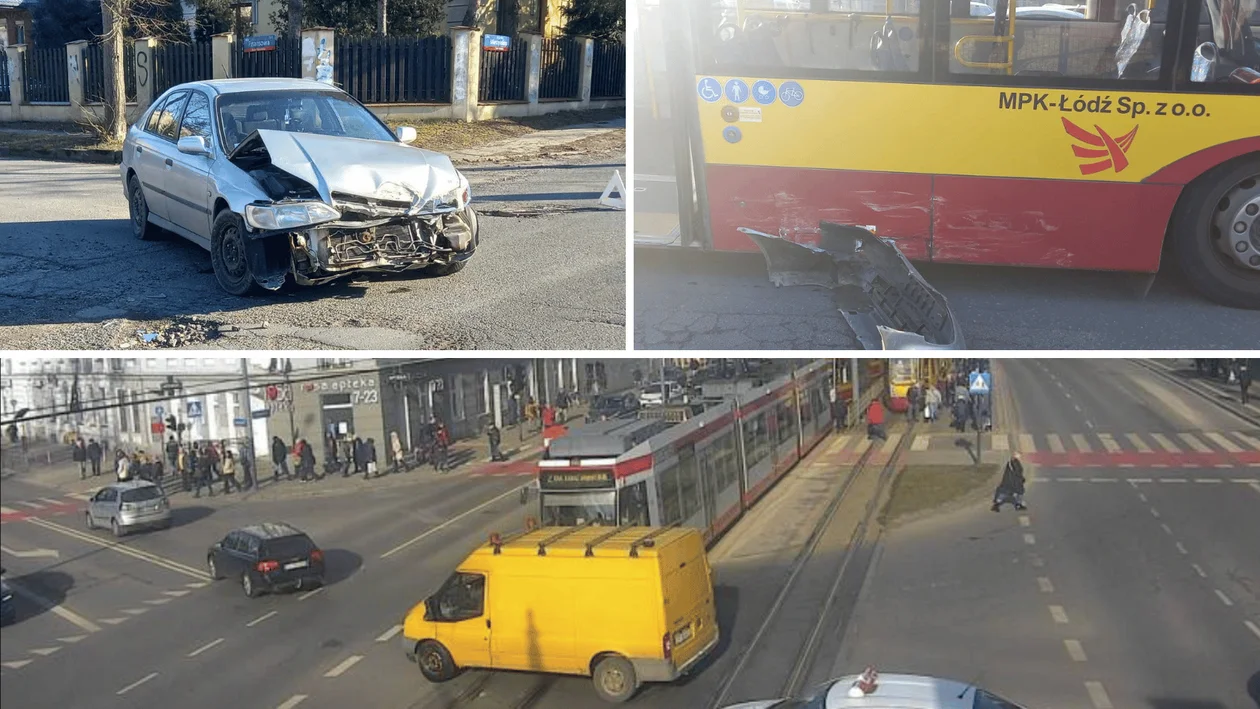 Kolizja z tramwajem i autobusem MPK Łódź - utrudnienia dla podróżnych