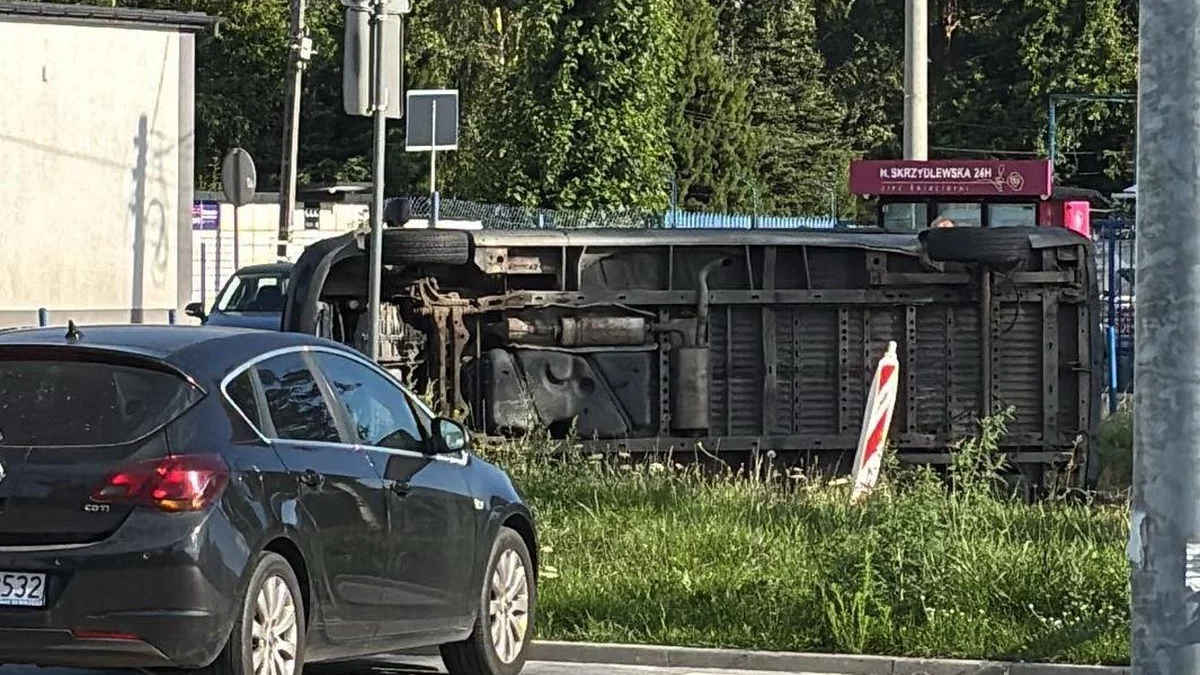 - 50-letni kierowca peugeota, poruszający się Marmurową, na skrzyżowaniu z Brzezińską nie zastosował się do znaku "ustąp pierwszeństwa" i doprowadził do zderzenia z busem. Bus został wytrącony z toru jazdy i przewrócił się na jezdnię. Jego kierowca, 67-letnie mężczyzna, został przewieziony do szpitala