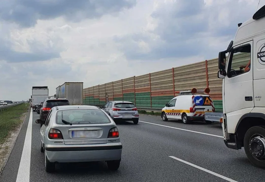 Zajęty jest szybki pas w kierunku Poznania. Ruch odbywa się pasem wolnym.