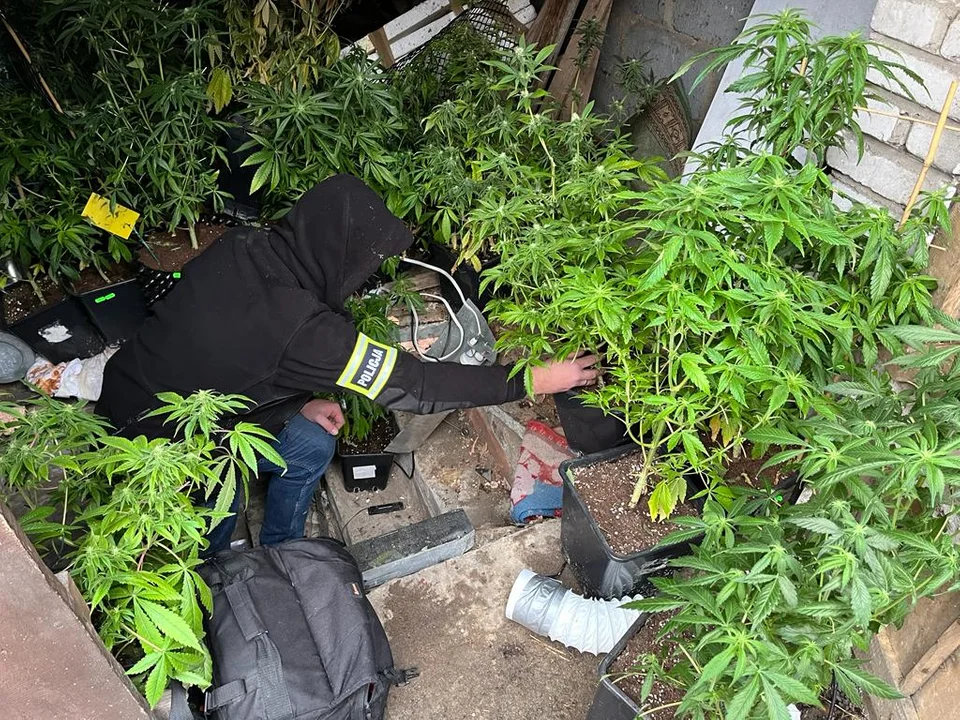 - Dodatkowo funkcjonariusze w budynkach gospodarczych na posesji odkryli dwa pomieszczenia piwniczne, w których znaleźli 45 doniczek z odurzającymi roślinami oraz urządzenia służące do ich uprawy. Wstępne badanie potwierdziło, że zabezpieczone rośliny to marihuana - dodaje kom. Magdalena Nowacka.