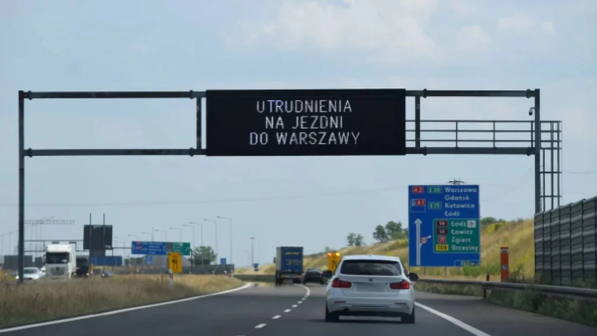 "Awaria busa. Zablokowany pas prawy w kierunku Warszawy. Zablokowany jeden pas ruchu. Ruch odbywa się pasem lewy"