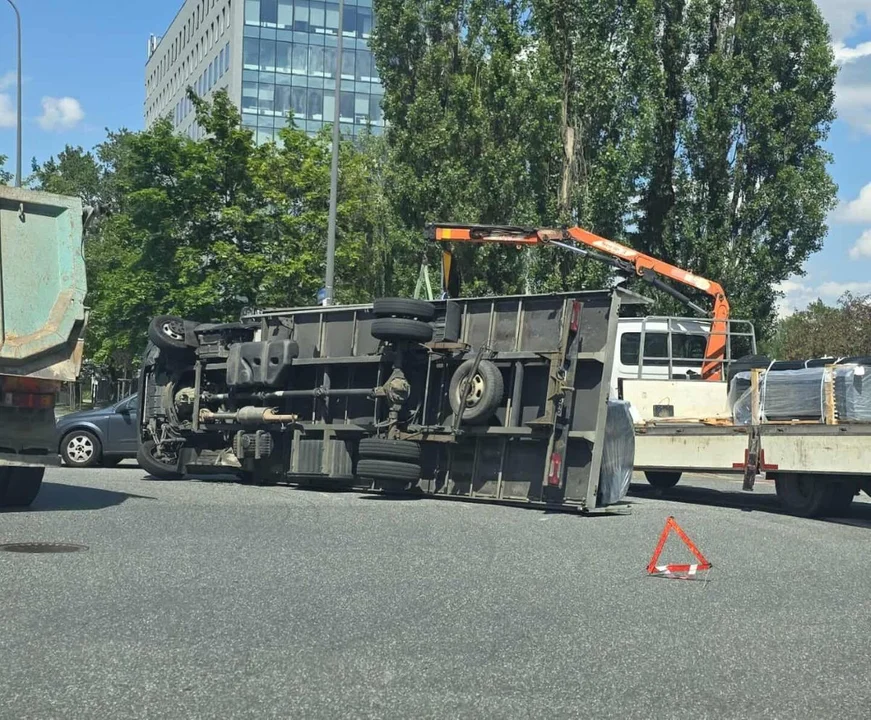 Do zdarzenia doszło w poniedziałek, 14 lipca, w dzielnicy Teofilów. Kierowca ciężarówki skręcał na rondzie, gdy nagle pojazd przewrócił się na bok. Na miejsce szybko dotarły służby ratunkowe. Trzeba było użyć dźwigu, by ją podnieść.