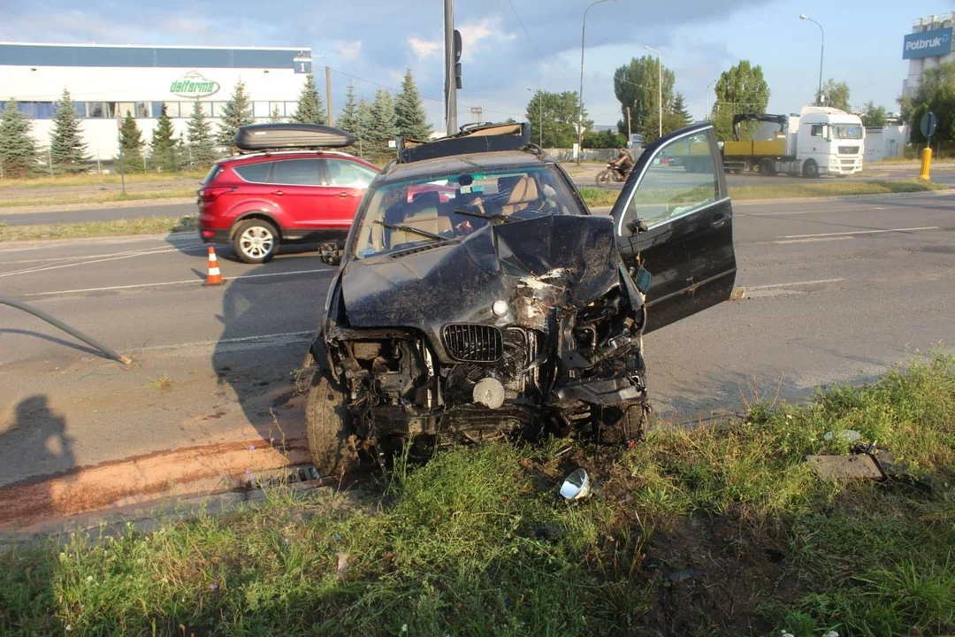 Na wysokości ulicy Dąbrowskiego kierowca czarnego BMW uderzył w przystanek autobusowy. Po tym, jak wycofał, postanowił dalej kontynuować jazdę. Kilka metrów dalej, na wysokości skrzyżowania ulic Puszkina z Dostawczą, stracił panowanie nad autem i uderzył z całą siłą w uliczną latarnię, która wprost z całym okablowaniem została wyrwana z ziemi.