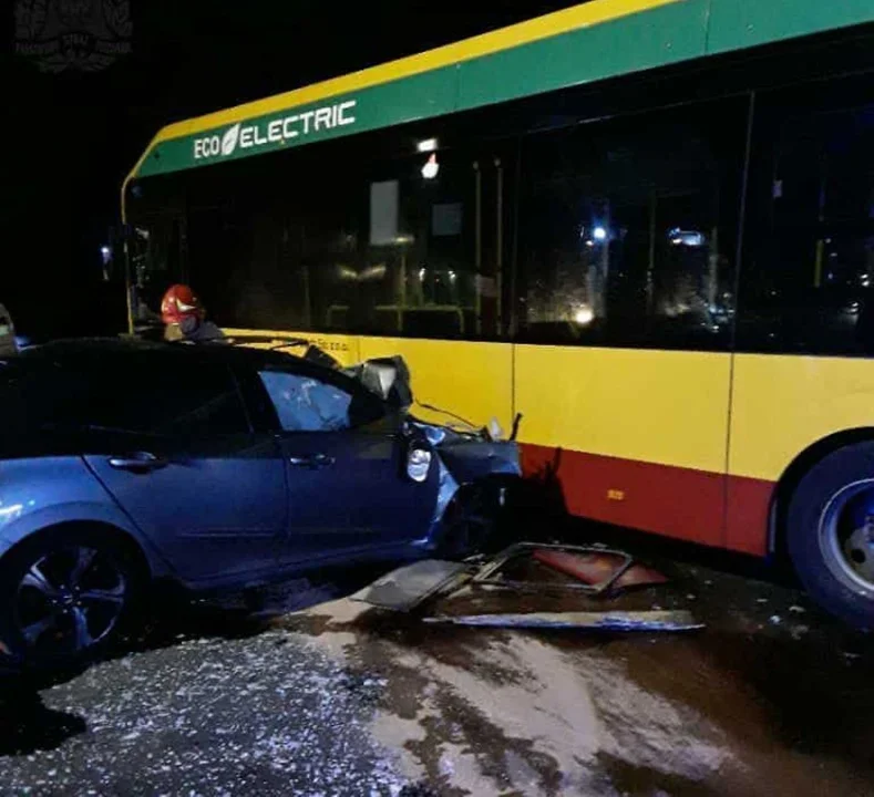 - Samochód osobowy zderzył się z autobusem MPK linii 80. Kierowca auta został zakleszczony w pojeździe. Strażacy musieli wykonać do niego dostęp przy pomocy narzędzi hydraulicznych