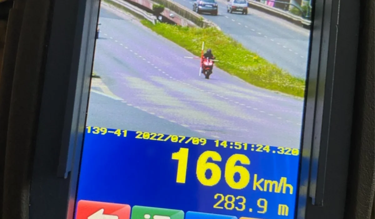 Mundurowi zmierzyli prędkość jednośladu. Laserowy miernik prędkości wykazał 166 km/h w miejscu gdzie obowiązuje ograniczenie do 70, czyli za szybko o 96 km/h. Stróże prawa natychmiast zatrzymali suzuki do kontroli. 19-letni motocyklista był całkowicie zaskoczony widokiem policjantów, wielokrotnie powtarzał, że nie spodziewał się ich właśnie w tym miejscu.