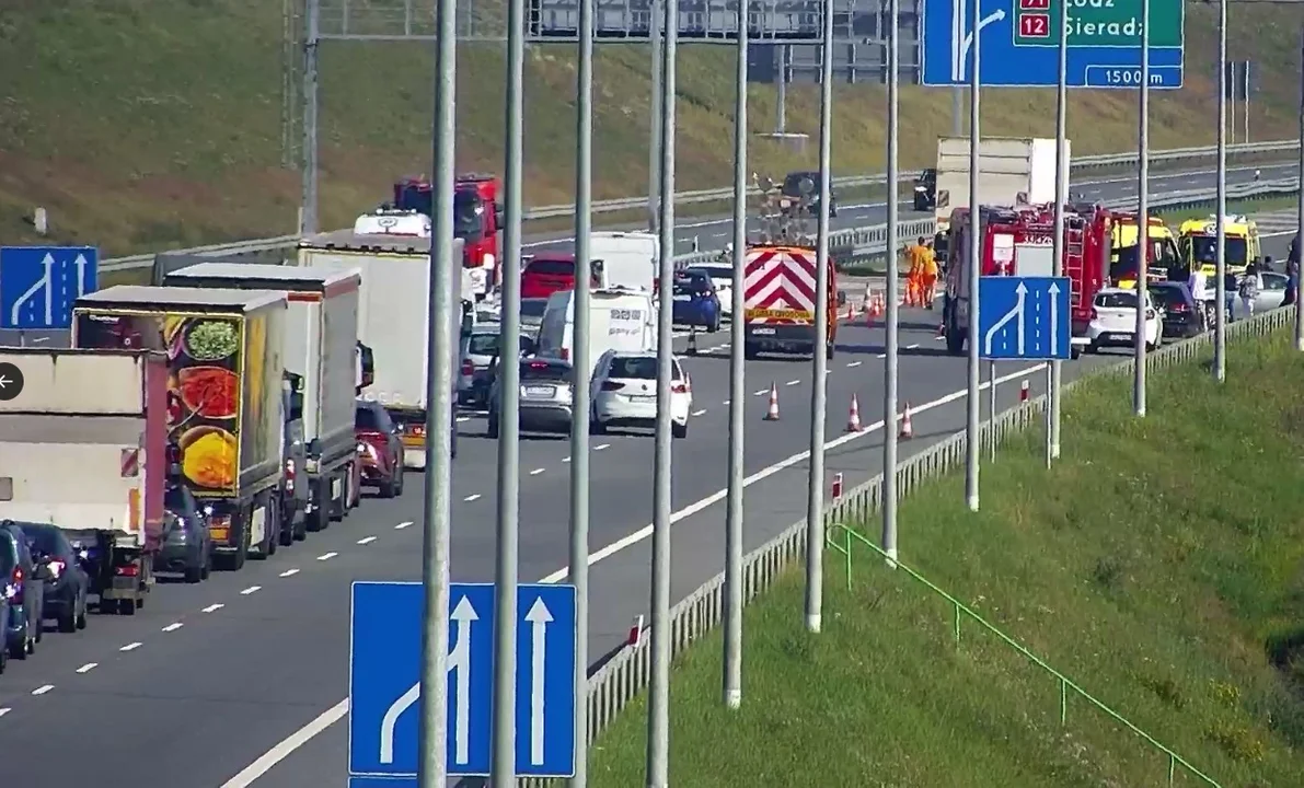 Na wysokości węzłów Łódź Górna - Łódź Wschód doszło do kolizji samochodu ciężarowego z autem osobowym. Prawy pas ruchu został całkowicie zablokowany. Na miejsce wezwano służby.