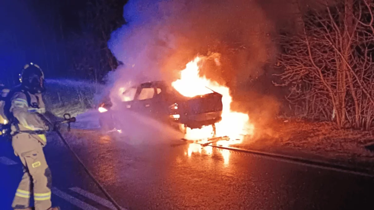 - W dniu wczorajszym 22 grudnia 2024 r. około godz. 19.20 zostaliśmy zadysponowani dwoma zastępami przez PSK PSP w Bełchatowie, do pożaru samochodu o napędzie elektrycznym na drodze wojewódzkiej nr 473 w miejscowości Zabiełłów / Kuźnica