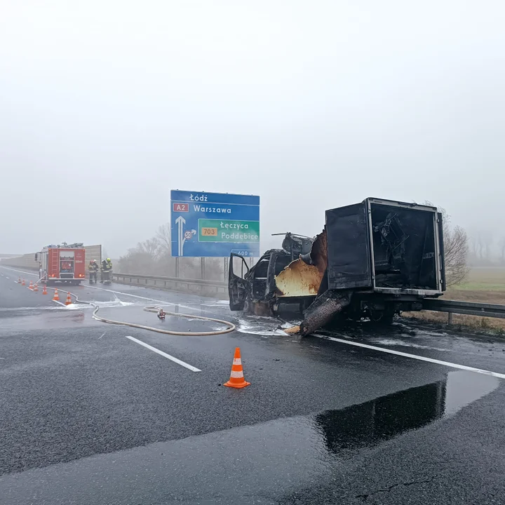 Pożar samochodu dostawczego na autostradzie A2 w Łódzkiem