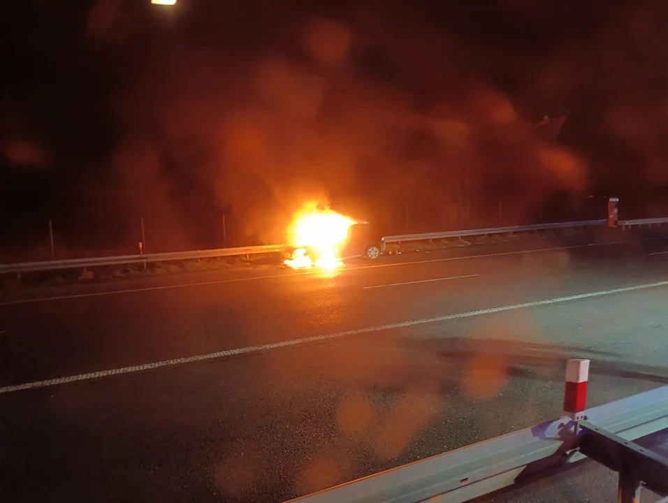 Kierowca auta podróżował nitką w stronę Poznania. Nagle jego samochód stanął w płomieniach. Na szczęście udało mu się bezpiecznie ewakuować z pojazdu. Prawdopodobną przyczyną pojawienia się ognia było zwarcie w instalacji elektrycznej samochodu.