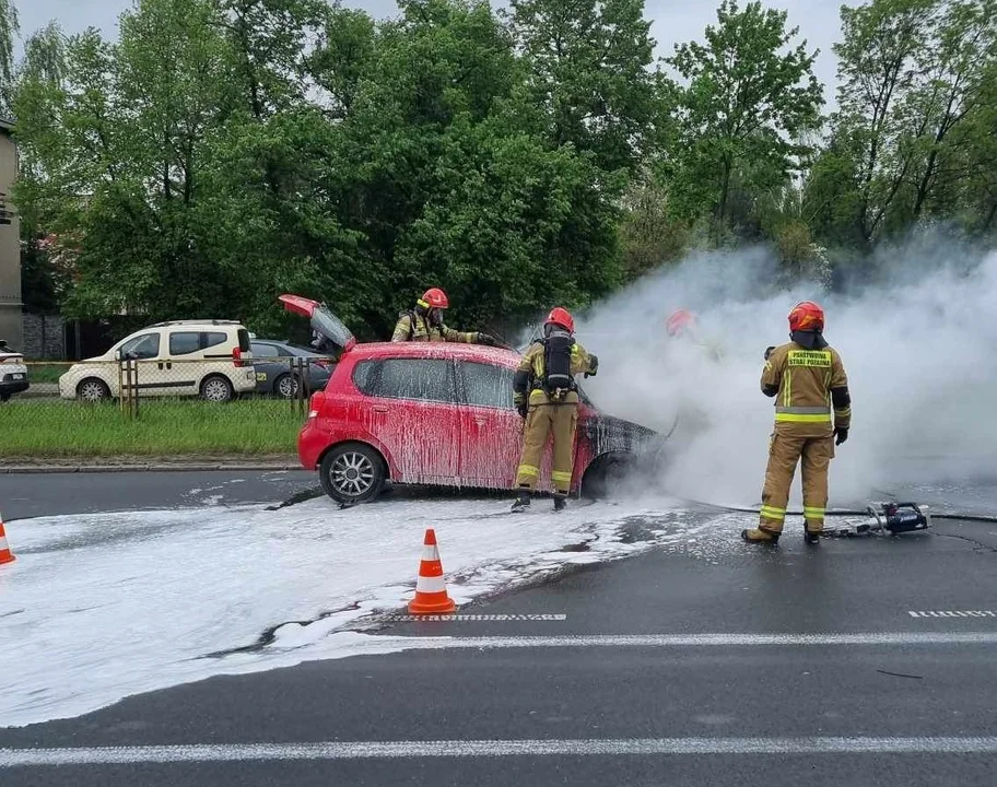 Nieduże auto osobowe stanęło w płomieniach około godz. 10 na nitce ul. Broniewskiego, między rondem Insurekcji Kościuszkowskiej a ul. Rzgowską.