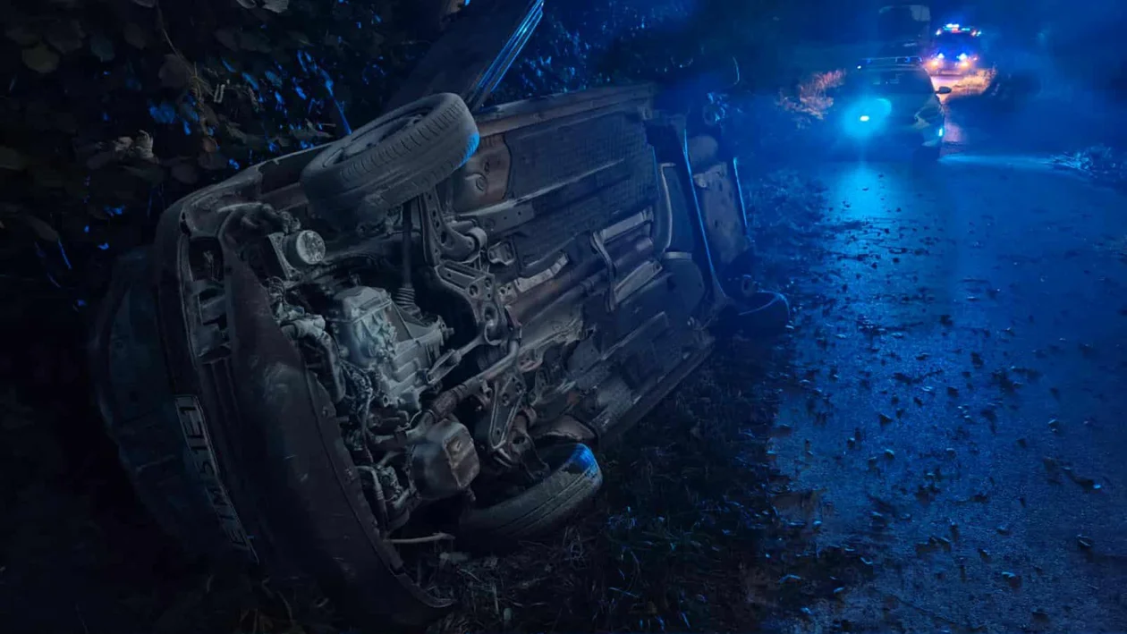 Jak podaje straż pożarna, samochód osobowy prowadzony przez 76-letniego mężczyznę wypadł z drogi i dachował.