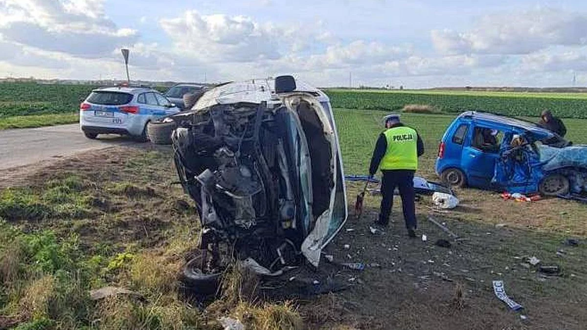 Oba pojazdy w wyniku zderzenia zostały kompletnie rozbite.