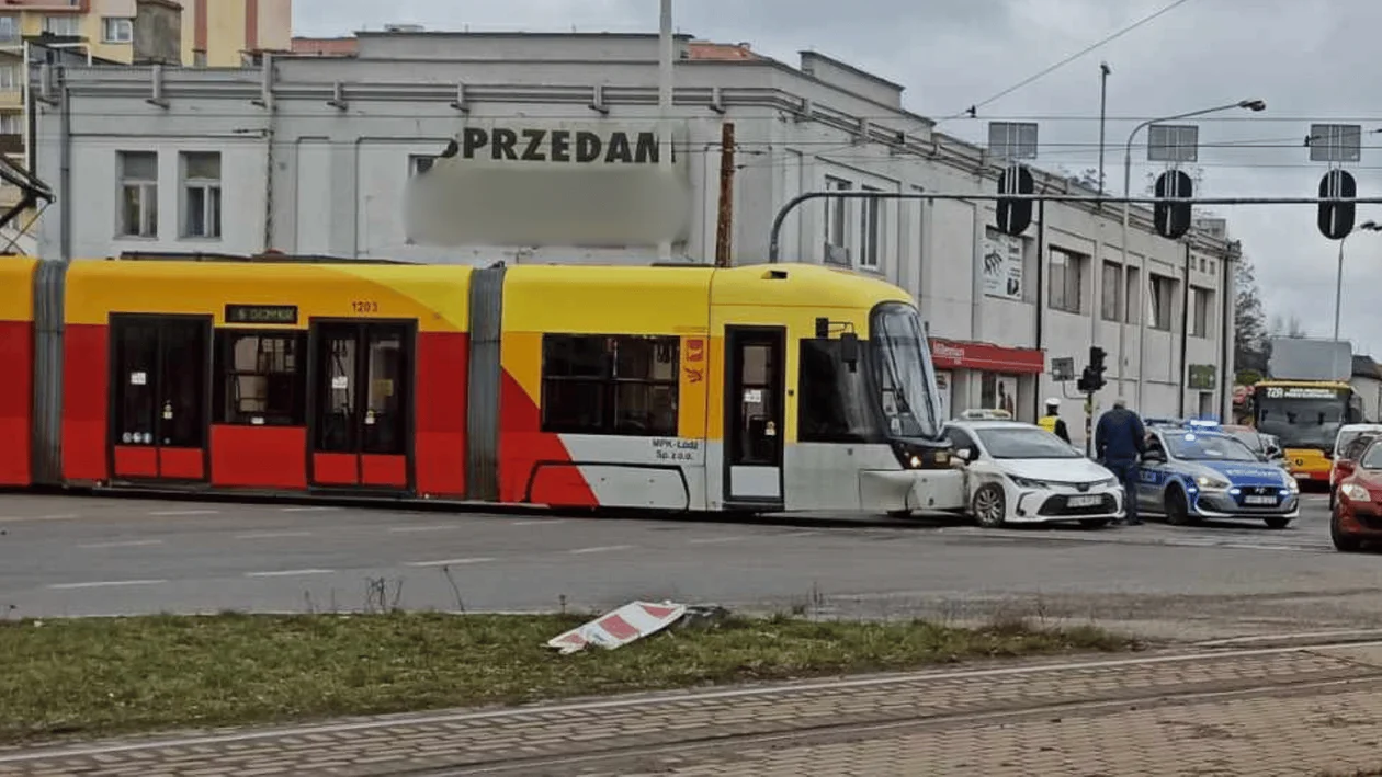 Kolizja tramwaju MPK Łódź z taksówką na ul. Rzgowskiej w Łodzi