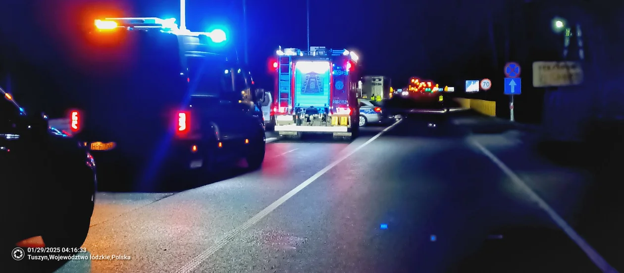 Na 327. kilometrze DK12 w Tuszynie pieszy został potrącony przez tira. Zginął na miejscu. Trwa ustalanie, dlaczego mężczyzna znajdował się na środkowym pasie trasy prowadzącej do Piotrkowa Trybunalskiego.