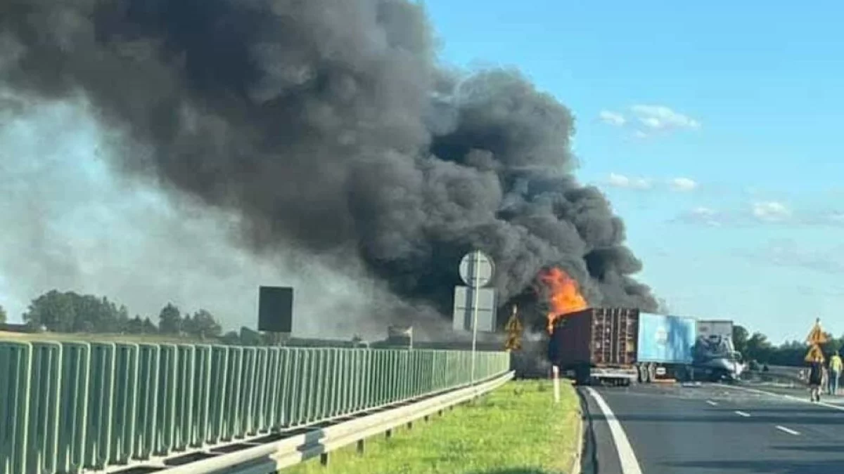 Ze wstępnych informacji podanych przez służby drogowe wynika, że na 43. kilometrze A1 w stronę Łodzi, za MOP-em Olsza, zderzyły się dwa samochody ciężarowe. Po zderzeniu w jednym z pojazdów wybuchł pożar.Autostrada w miejscu zdarzenia jest zablokowana. Utrudnienia potrwają kilka godzin.