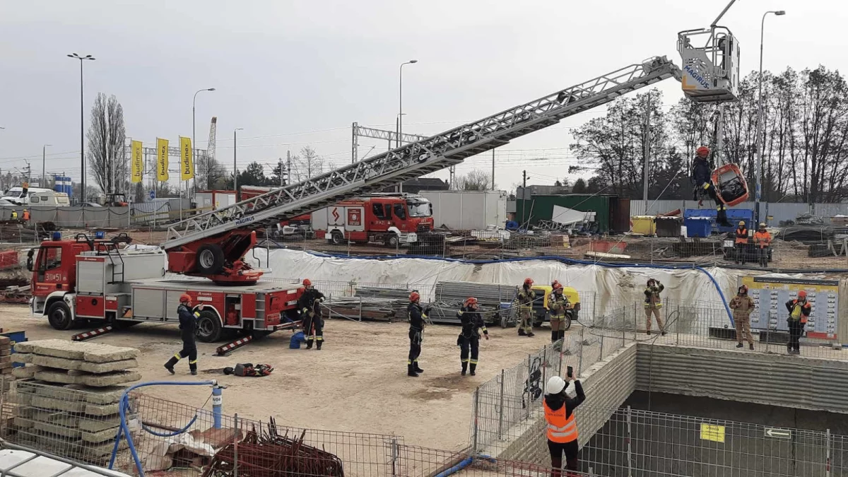 Łódzcy strażacy na placu budowy komory Kolei Dużych Prędkości
