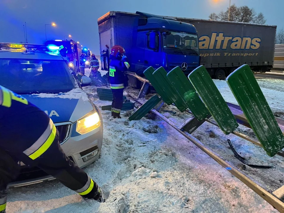 Do zdarzenia doszło w godzinach popołudniowych ( 16 grudnia) w miejscowości Emilia na 343 kilometrze autostrady A2. Jak przekazał mł. bryg. Michał Mirowski samochód ciężarowy uderzył w tym miejscu w barierki. Ze wstępnych informacji wynika, że w wypadku nikt nie został poszkodowany. Kierowcy podróżujący tą trasą muszą jednak liczyć się z utrudnieniami na drodze.