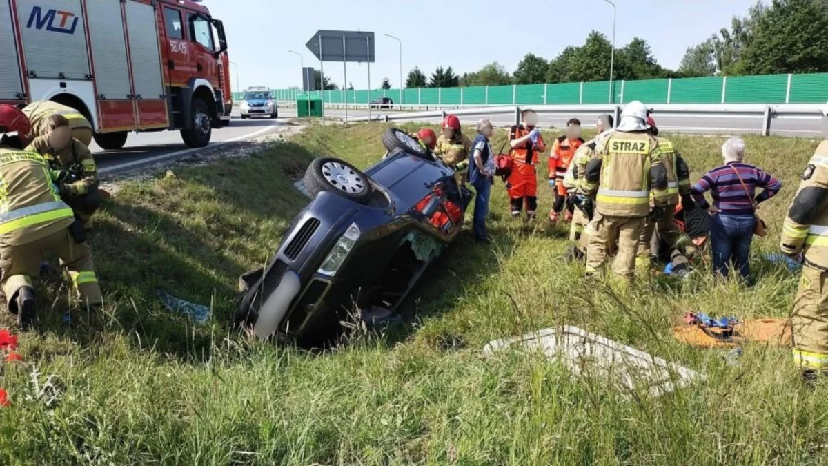 Wypadek pod Łodzią. Na S14 dachowało auto