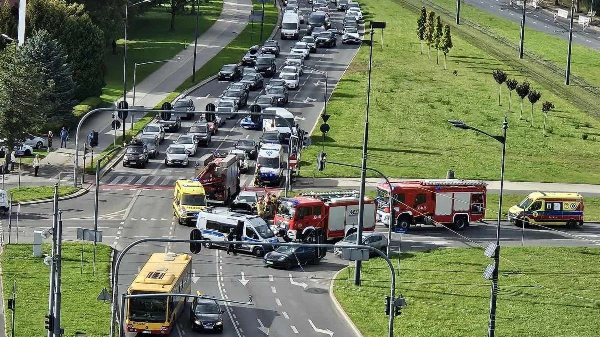 Jak przekazuje nam kom. Adam Dembiński, skoda zatrzymała się na czerwonym świetle, podobnie jak jadący za nią volkswagen. W oba auta wjechała toyota, a później sytuacja potoczyła się jak w dominie, volkswagen uderzył w skodę.