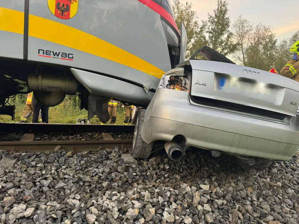 Na niestrzeżonym przejeździe kolejowym pociąg zderzył się z samochodem osobowym.