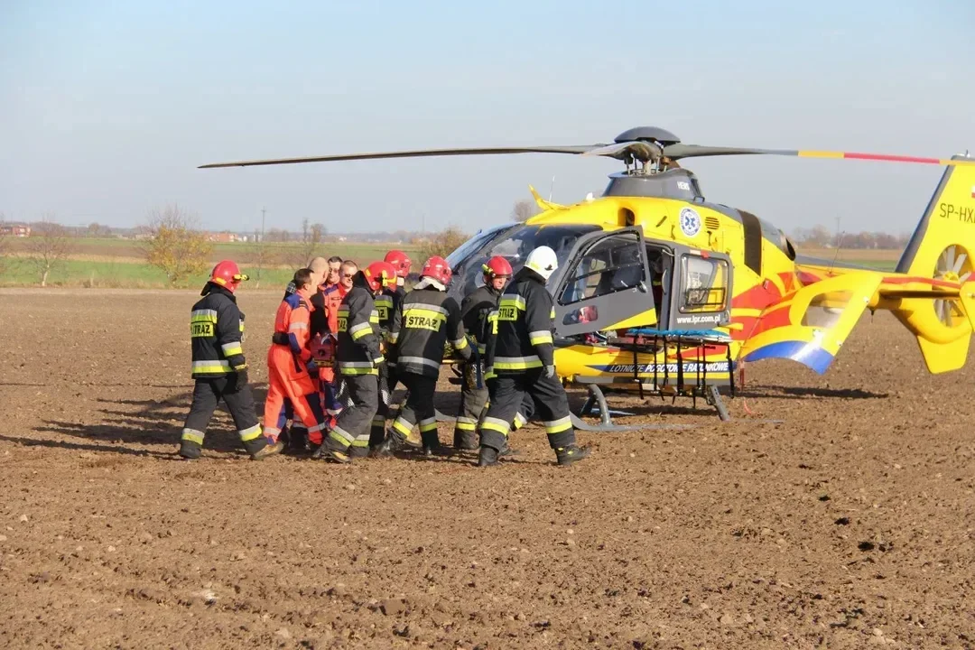 Do zdarzenia doszło na terenie jednej z działek, na zewnątrz budynku. Na miejscu obecne były dwa zastępy Straży Pożarnej ze Strykowa i OSP Kiełmina oraz pogotowie i policja. Na miejsce wezwano także LPR, który przetransportował mężczyznę do szpitala. Jak policja, był to wypadek podczas pracy.