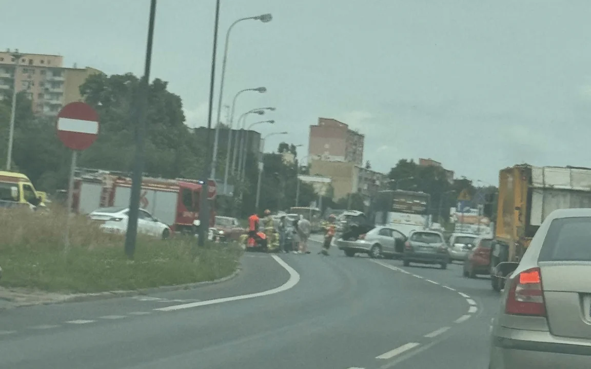 Na wysokości ulicy Maratońskiej przy skrzyżowaniu z ul. Armii Krajowej doszło do zderzenia samochodu osobowego z motocyklistą.