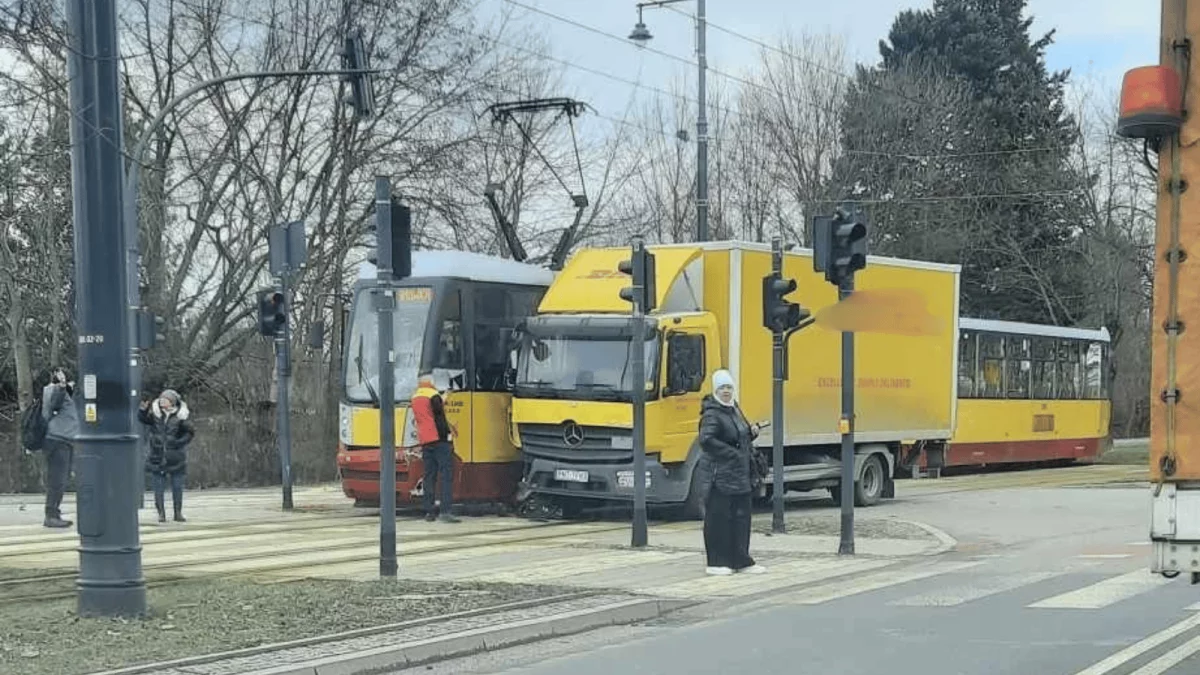 Zderzenie samochodu ciężarowego z tramwajem MPK Łódź