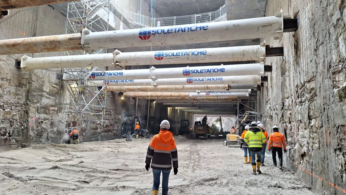 Przed budową komory "Fabryczna" konieczne było wzmocnienie fundamentów Łódzkiego Domu Kultury. Tym zajmowała się spółka Keller. Dopiero potem Budimex mógł wkroczyć do akcji.