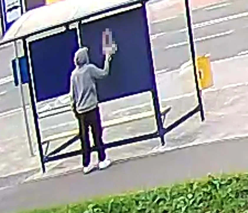Ziomeczku w szarej bluzie, zapraszam do wyczyszczenia przystanku... Możesz zabrać kolegów, z którymi szedłeś w piątek 13.10 o godz. 17:06. Mam nadzieję, że zobaczysz co żeś sobie namalował...