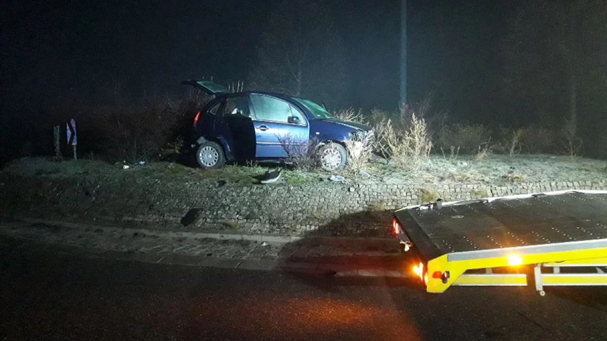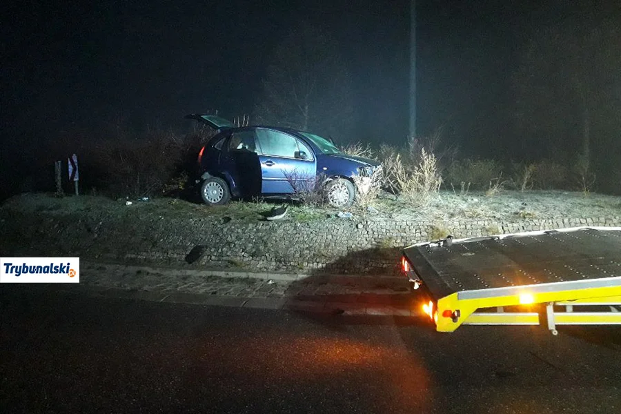 Do nietypowego zdarzenia na drodze pod Piotrkowem doszło w niedzielę, 1 grudnia po godzinie 23:00. Kierowca pojazdu zakończył jazdę… na rondzie.