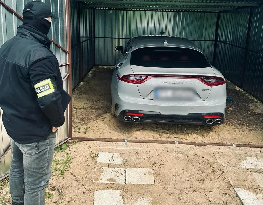 Policjanci odzyskali skradzione auto. Kia Stinger warta 140 tys. zł schowana w "blaszaku"