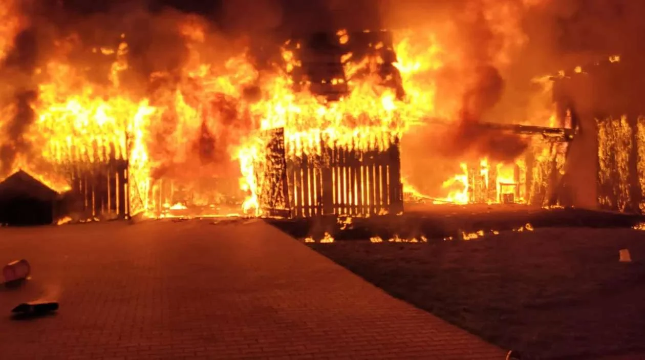 Czterdziestu czterech strażaków brało udział w nocnej akcji gaszenia budynków o łącznej powierzchni około pół tysiąca metrów kwadratowych.