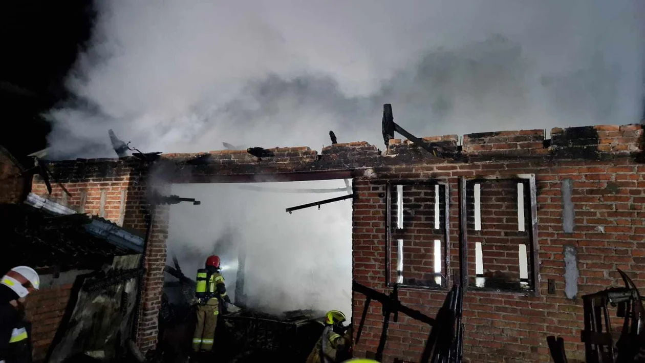 Straż pożarna została wezwana do płonącego budynku gospodarczego. Jedna osoba została poszkodowana. W akcji brało udział 6 zastępów straży pożarnej. Działania zakończyły się o 4.42.