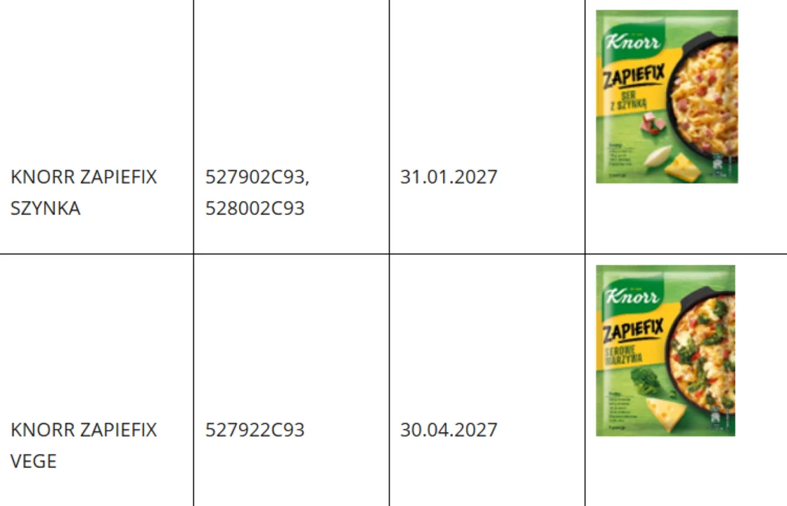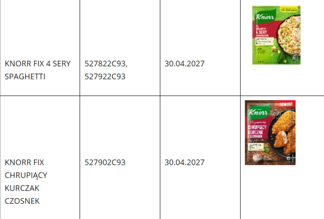 Biedronka informuje na swojej stronie o wycofaniu ze sprzedaży wybranych partii trzech produktów marki Knorr , które „na skutek błędu produkcyjnego w zakładzie mogą nie nadawać się do spożycia”. O to samo proszeni są klienci Lidla, w którym wycofywane produkty także były sprzedawane. Konkurencyjny dyskont również wydał komunikat, informując o usunięciu ze sprzedaży partii dwóch Fixów marki Knorr.