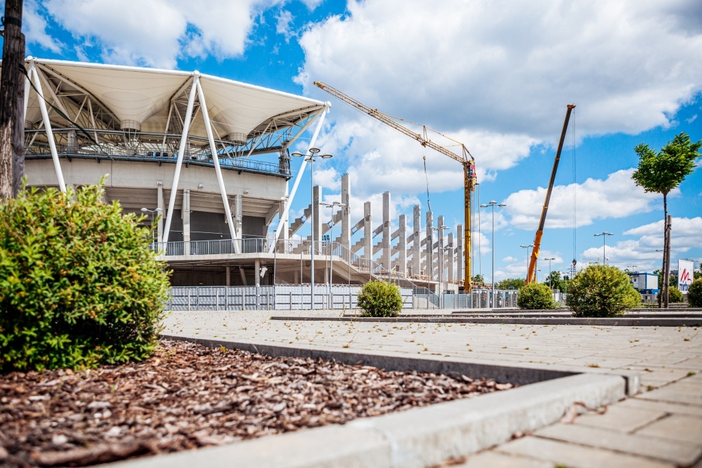 - Zmontowaliśmy już większość prefabrykowanych trybun, które nie są wylewane na miejscu co gwarantuje odpowiednią jakość i trwałość. To są żelbety architektoniczne, które za pięć, dziesięć lat będą tak samo wyglądały. Prefabrykaty związane z montażem trybun nadal będą przyjeżdżały, a równocześnie są robione stropy na trybunie wschodniej. Jesteśmy też na etapie zamówień konstrukcji stalowej, dźwigarów i pokrycia dachu, którego montaż chcemy rozpocząć jesienią – powiedział Jerzy Mirgos.