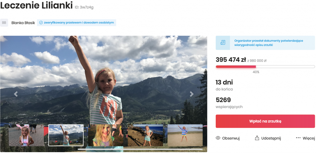 Co warto podkreślić, w pomoc dziewczynce zaangażował się także ŁKS Łódź, Marcin Gortat, ŁKS Commercecon Łódź oraz Szkoła Marcina Gortata, której Lilianka jest uczennicą.