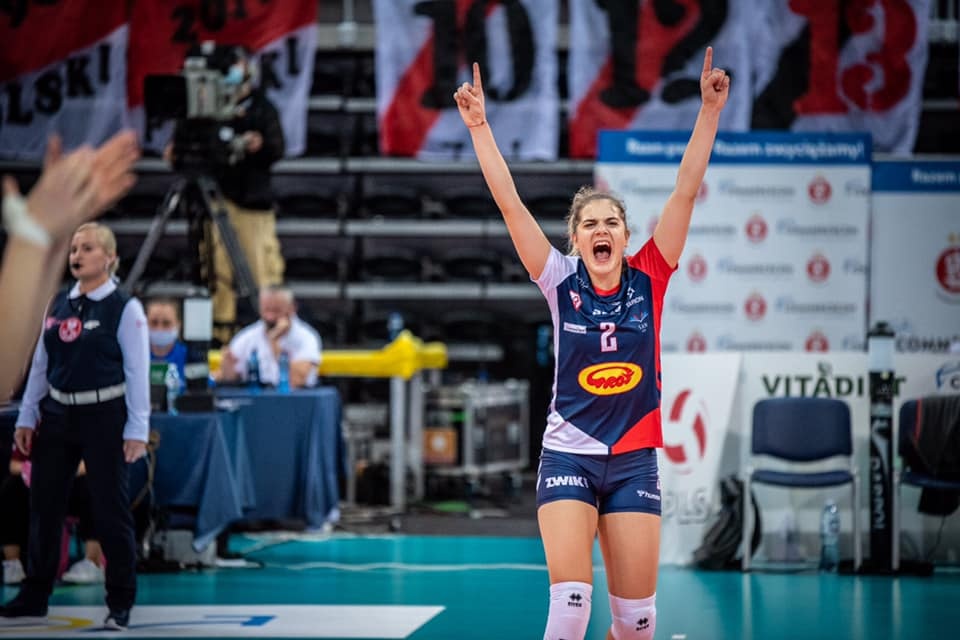 Początek drugiego seta to zupełnie inna gra drużyny ŁKS-u. Biało-czerwono-białe od razu zaczęły dominować i wyszły na prowadzenie 4:1. Grot Budowlane zupełnie nie przypominały drużyny z pierwszej partii. Zawodniczki z betką na piersi popełniały proste błędy, które skutkowały wynikiem 6:2 dla ŁKS-u Commercecon i przerwą wziętą przez Błażeja Krzyształowicza. Problemy Grot Budowlanych powiększyły się jeszcze, kiedy na zagrywkę w zespole trenera Cuccariniego weszła Kalandadze. Mocne zagrywki Gruzinki sprawiały ogromne problemy drużynie Grot Budowlanych, a wynik wymykał im się spod kontroli. Błażej Krzyształowicz musiał reagować i drugi raz w tym secie prosił o czas przy wyniku 11:4 dla biało-czerwono-białych. Siatkarki ŁKS-u prowadziły już 17:8 i wydawało się, że szybko doprowadzą do remisu 1:1, ale sytuacja na boisku powoli zaczęła się odwracać. Na zagrywkę w szeregach Grot Budowlanych weszła środkowa, Kornelia Moskwa. W tym ustawieniu siatkarki z betką na piersi zdobyły aż 10 punktów z rzędu i zrobiłby wręcz coś nieprawdopodobnego. Z wyniku 17:9 dla ŁKS-u nagle zrobiło się 18:17 dla Grot Budowlanych i drugi set zaczął się od nowa. Niezwykle emocjonująca końcówka zakończyła się jednak happy endem dla ŁKS- Commercecon, który wygrał 25:23. Gdyby ełkaesianki przegrały drugą partię prowadząc 17:8 to byłaby to dla nich bardzo gorzka pigułka do przełknięcia. Podopieczne Giuseppe Cuccariniego okazały się jednak lepsze w wojnie nerwów i doprowadziły do remisu 1:1.