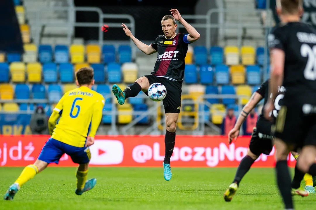 22’ - Aktywny Karol Czubak był bliski dojścia do piłki po dośrodkowaniu Olafa Kobackiego, ale w ostatniej chwili zareagował Marek Kozioł, uprzedzając byłego napastnika Widzewa.