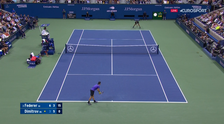 W piątym gemie trzeciego seta przy stanie 2:2, Roger prowadził już 40:0 przy serwisie Bułgara. Jednak Grigor wygrał pięć piłek z rzędu wychodząc z nielada kłopotów. Niestety, nie na długo, bo od stanu 3:3 resztę gemów wygrał bardziej utytułowany rywal. Następny set zaczął się lepiej dla Bułgara, który przełamał od razu i przy dramatycznym gemie siódmym wynik się nie zmienił. Grigor "dowiózł" przewagę do końca seta 6:4. O wszystkim decydowała więc piąta partia.