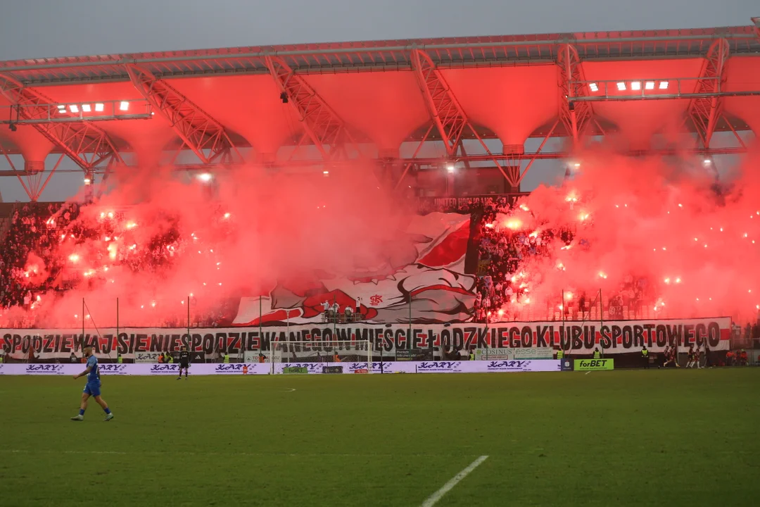 Goście byli groźni także po stałych fragmentach gry. ŁKS z kolei starał się wysoko odbierać futbolówkę i szybko stwarzać zagrożenie pod bramką przeciwnika. Jedna z takich sytuacji zakończyła się pięknym trafieniem Engjëlla Hotiego, który sytuacyjnie huknął sprzed pola karnego i w 32. minucie wyprowadził ŁKS na prowadzenie. Od momentu tej bramki to biało-czerwono-biali w pełni kontrolowali przebieg wydarzeń na boisku.
