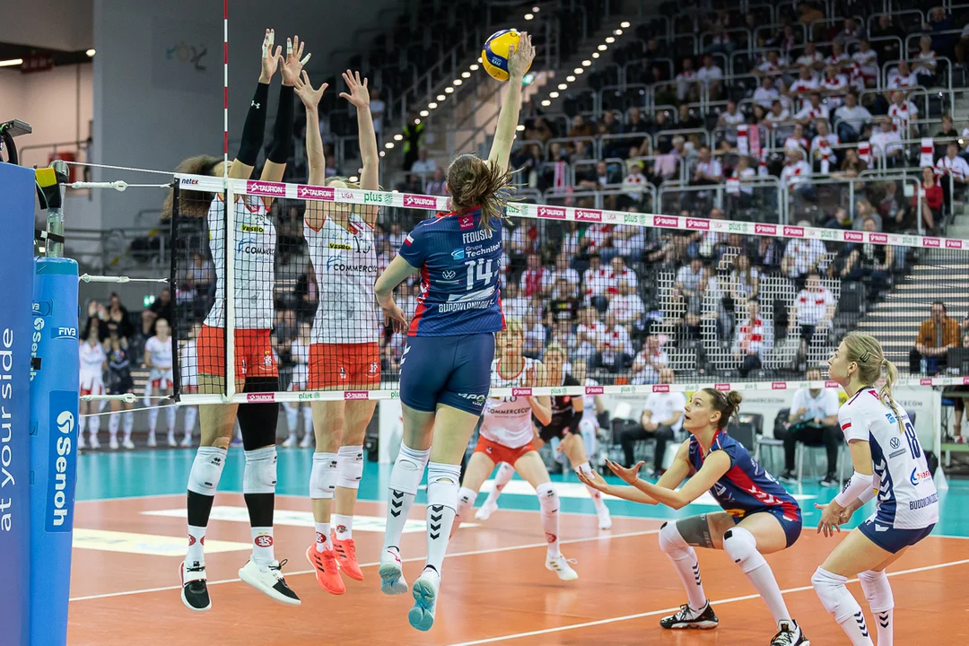 Dużo lepiej w ten mecz weszły zawodniczki Grot Budowlanych Łódź. Podopieczne Macieja Biernata prowadziły już 10:6 i 12:8, ale wtedy gra niebiesko-biało-czerwonych zupełnie stanęła. Budowlane zaczęły się spisywać fatalnie przy zagrywce Veroniki Jones-Perry, co zaowocowało stratą aż 11 punktów z rzędu. Dopiero przy stanie 19:12 dla ŁKS-u skutecznie zaatakowała Zuzanna Górecka. Grot Budowlane nie zdołały już jednak wrócić do rywalizacji w pierwszym secie i przegrały go 18:25. Zawodniczki z betką na koszulkach mają czego żałować, bo do pewnego momentu całkowicie dominowały na parkiecie.