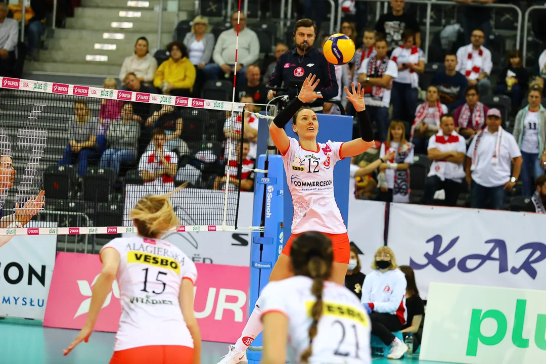 Pierwszy set natomiast potwierdził, że zdecydowanym faworytem w tej rywalizacji jest jednak zespół z przeplatanką na piersi. Po tym jak Freya Aelbrecht nie skończyła swojego ataku, ŁKS Commercecon prowadził już 8:4. Łodzianki bardzo dobrze czuły się na parkiecie i do końca seta przewaga gospodyń tylko się zwiększyła. Ostatecznie pierwszą partię podopieczne Michała Cichego wygrały 25:17.