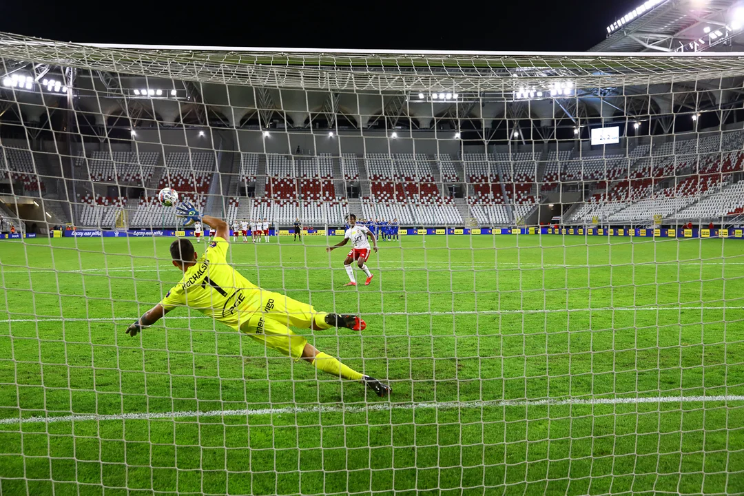 18’ - Maciej Dąbrowski zablokował strzał Vaštšuka, ale jak się okazało po analizie VAR, zrobił to ręką. Arbiter podyktował rzut karny. Goście jednak zmarnowali tę jedenastkę. Tylko w słupek trafił Mak.