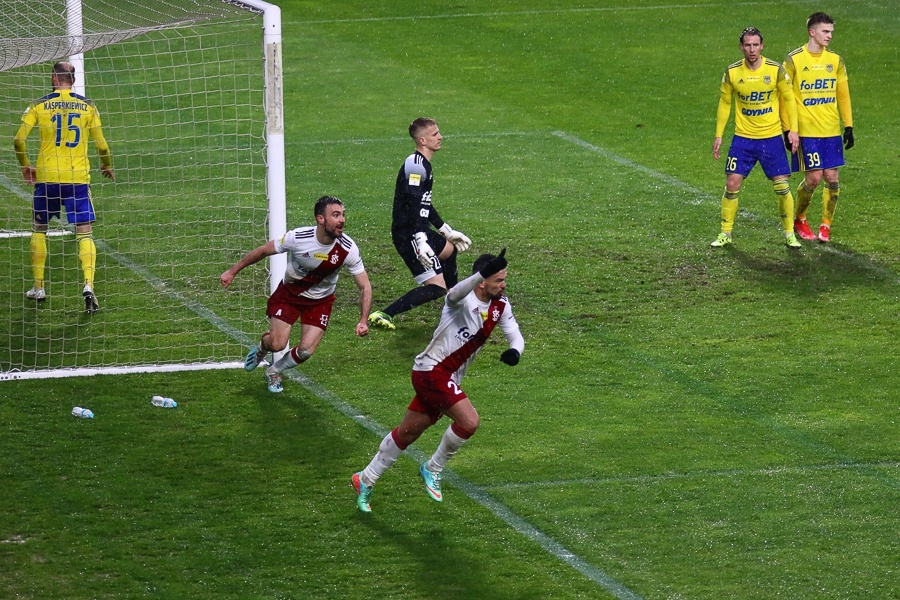 5’ - Już na samym początku było blisko bramki samobójczej. Po dośrodkowaniu gospodarzy z prawej strony piłka odbiła się jednego z obrońców ŁKS-u i minimalnie minęła lewy słupek bramki Arkadiusza Malarza.